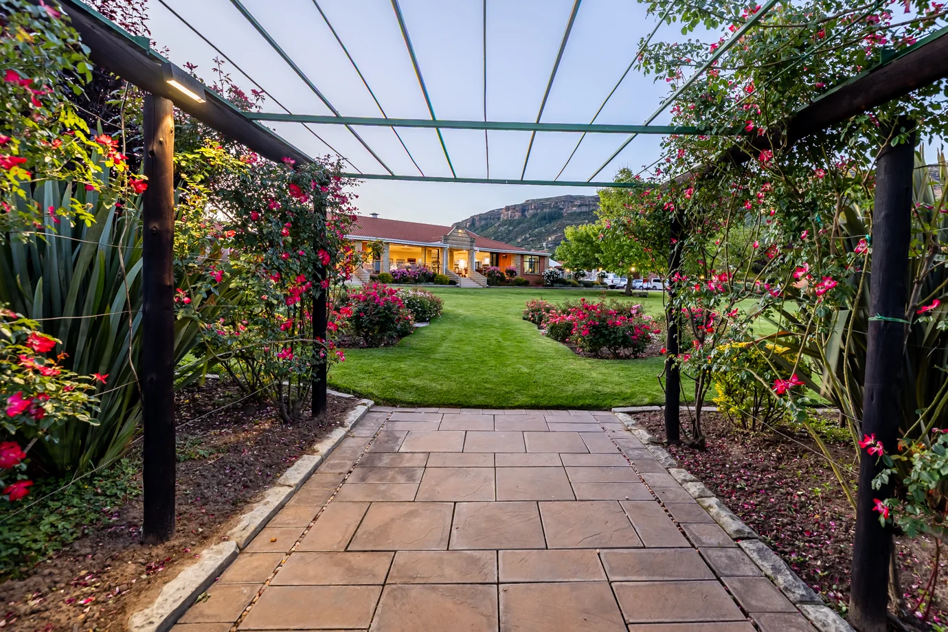 Botleng Guest House ("Place of Beauty") is a lush oasis located just outside of Maseru, Lesotho. True to its name, it is known for its serene atmosphere, beautiful well-maintained gardens, and scenic views of the Maluti mountains and the historic Thaba Bosiu fortress.